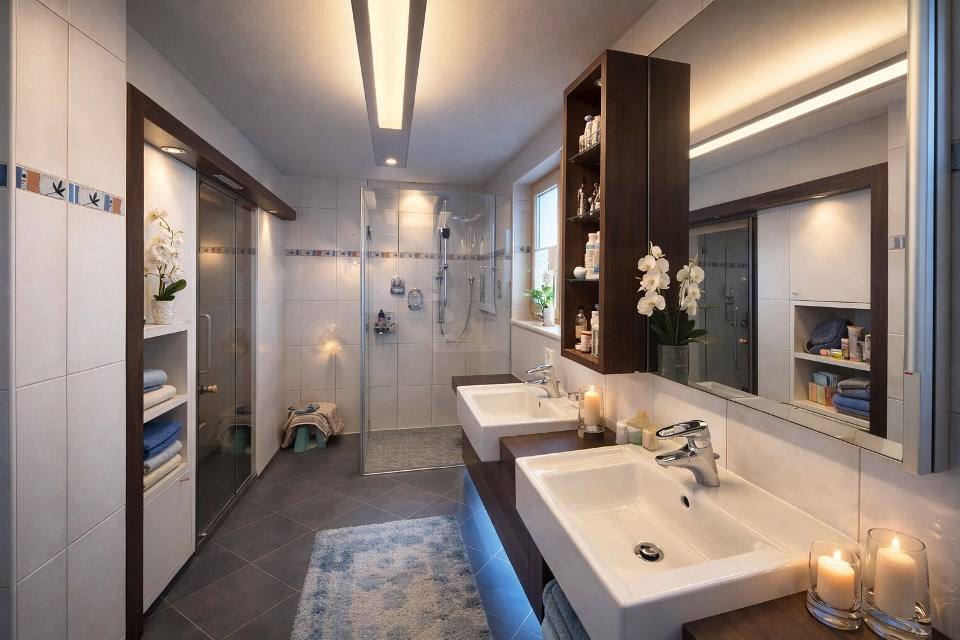 Die Ausstattung hebt sich klar vom Standard ab: Eine integrierte Dampfsauna bringt Wellness direkt nach Hause, das moderne Dusch-WC im Gästebad sorgt für zusätzlichen Komfort, sowie die zentrale Staubsauganlage und weitere durchdachte Ausstattungsdetails, unterstreicht den Anspruch an modernes Wohnen.