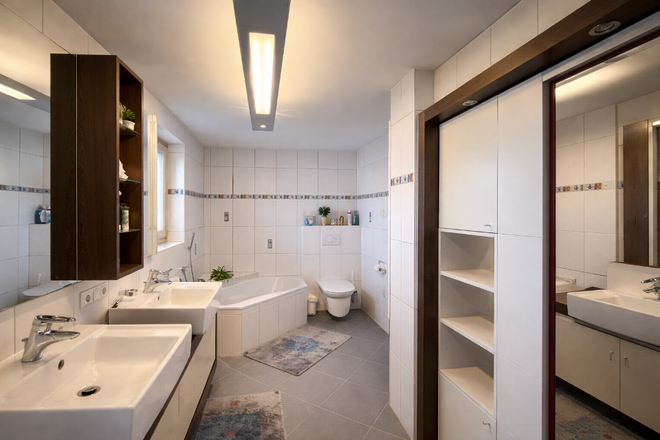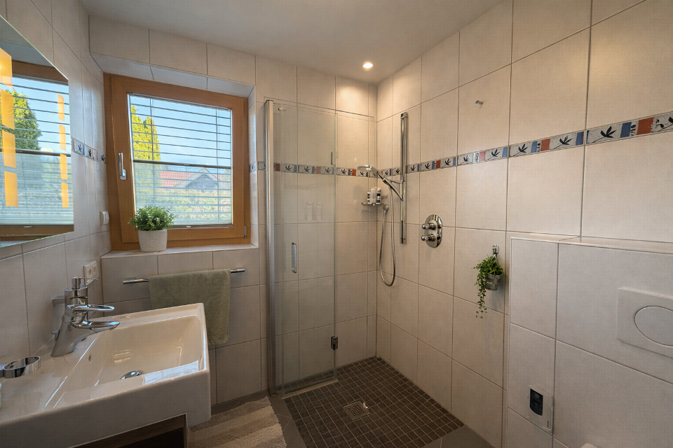 Die Ausstattung hebt sich klar vom Standard ab: Eine integrierte Dampfsauna bringt Wellness direkt nach Hause, das moderne Dusch-WC im Gästebad sorgt für zusätzlichen Komfort, sowie die zentrale Staubsauganlage und weitere durchdachte Ausstattungsdetails, unterstreicht den Anspruch an modernes Wohnen.